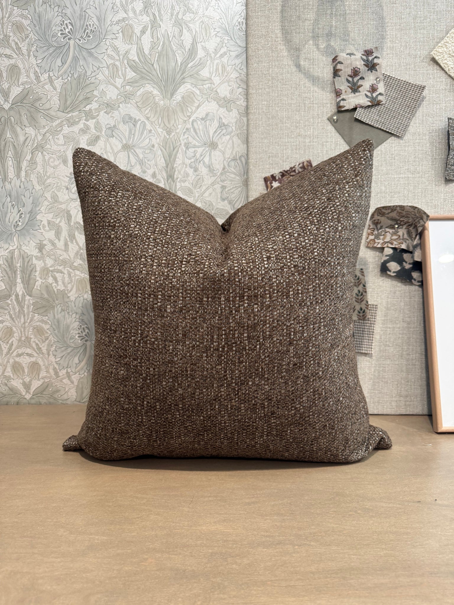 - Dark brown textured fabric